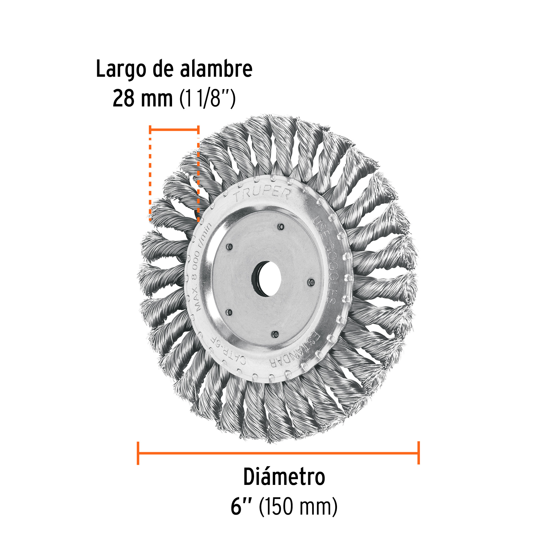 Carda Trenzado Fino 6″ x 5/8″ para Esmeril, Truper