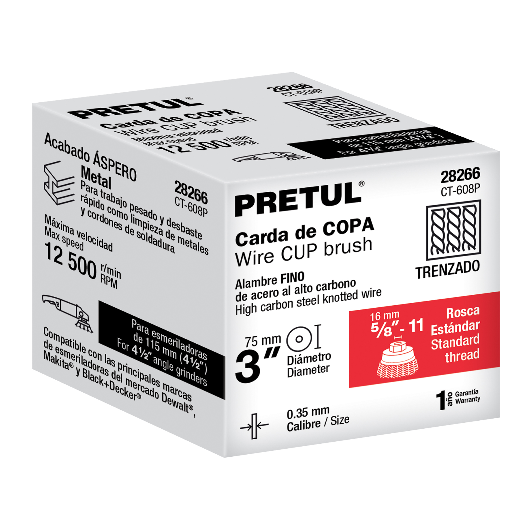 Carda para esmeriladora, optimizada para desbaste rápido y trabajo pesado como la limpieza de cordones de soldadura.