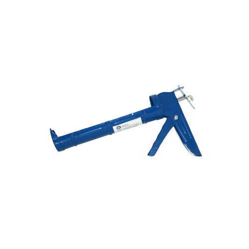 Pistola manual económica para cartuchos de silicón y selladores, ideal para trabajos de mantenimiento en casa, taller o construcción ligera. Ofrece una aplicación práctica del material a bajo costo.