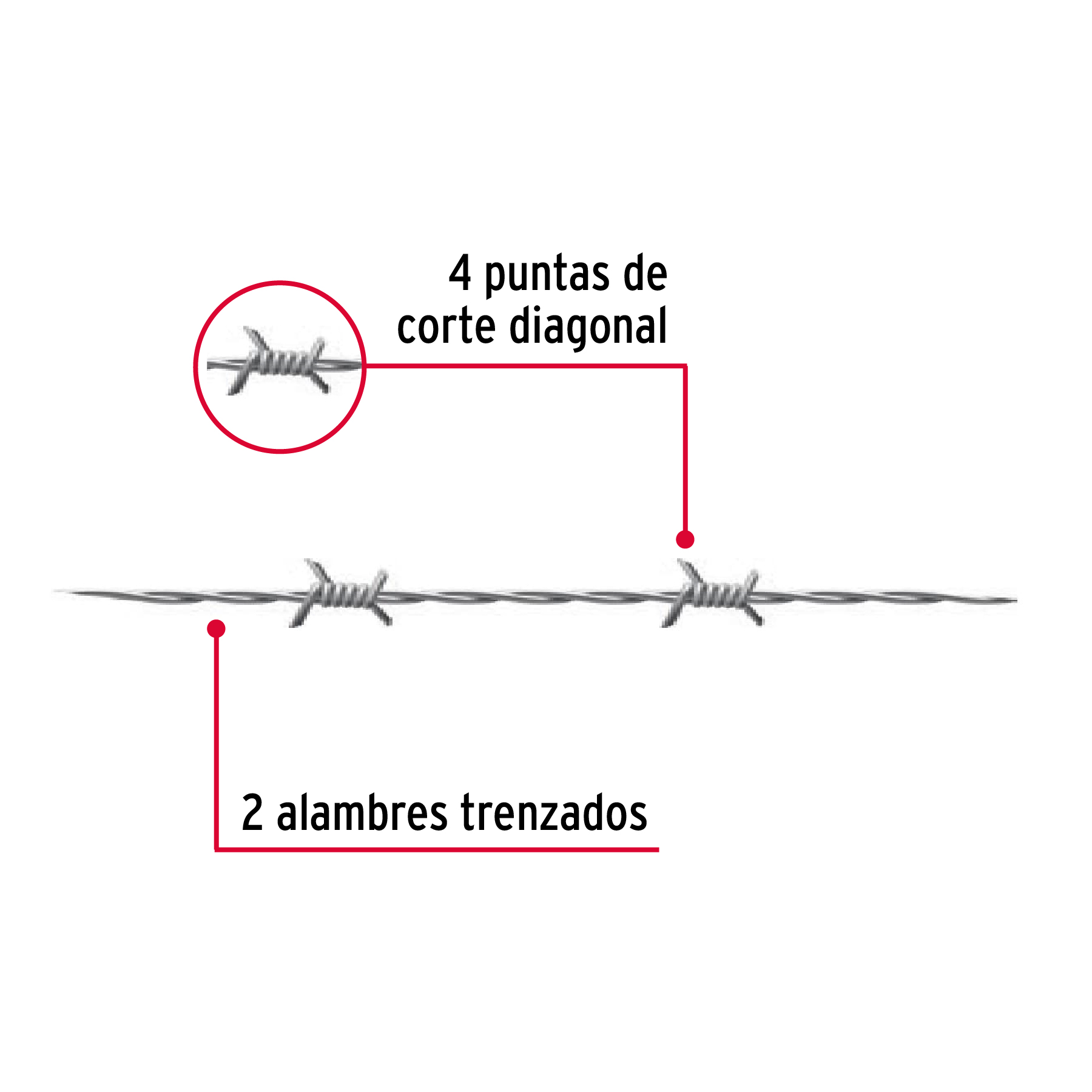 Alambre de púas de alta resistencia, fabricado en acero al carbono, ideal para cercos de seguridad en zonas agrícolas, ganaderas o de construcción. Cuenta con dos alambres trenzados y púas de 4 puntas con corte diagonal, distribuidas cada 12.7 cm. Su recubrimiento lo hace resistente a la corrosión y su presentación en rollo de 360 metros facilita el transporte e instalación.