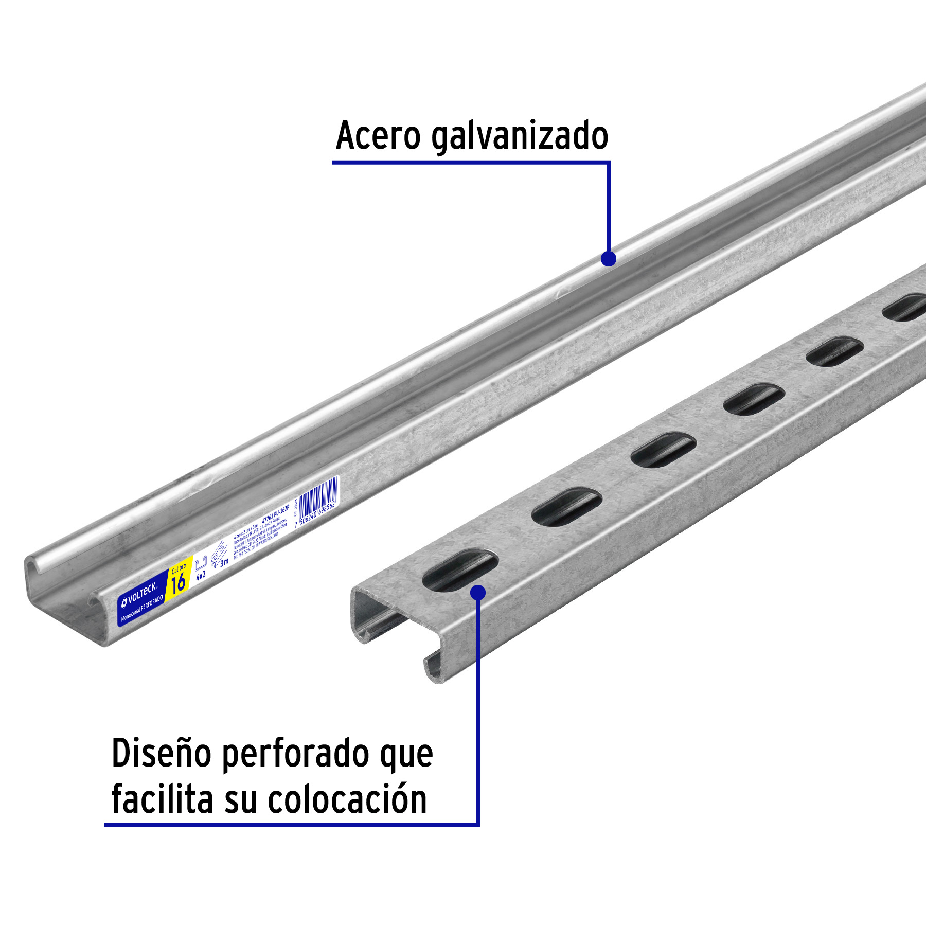 Perfil monocanal perforado 3m, 4×2, calibre 16 (unicanal)